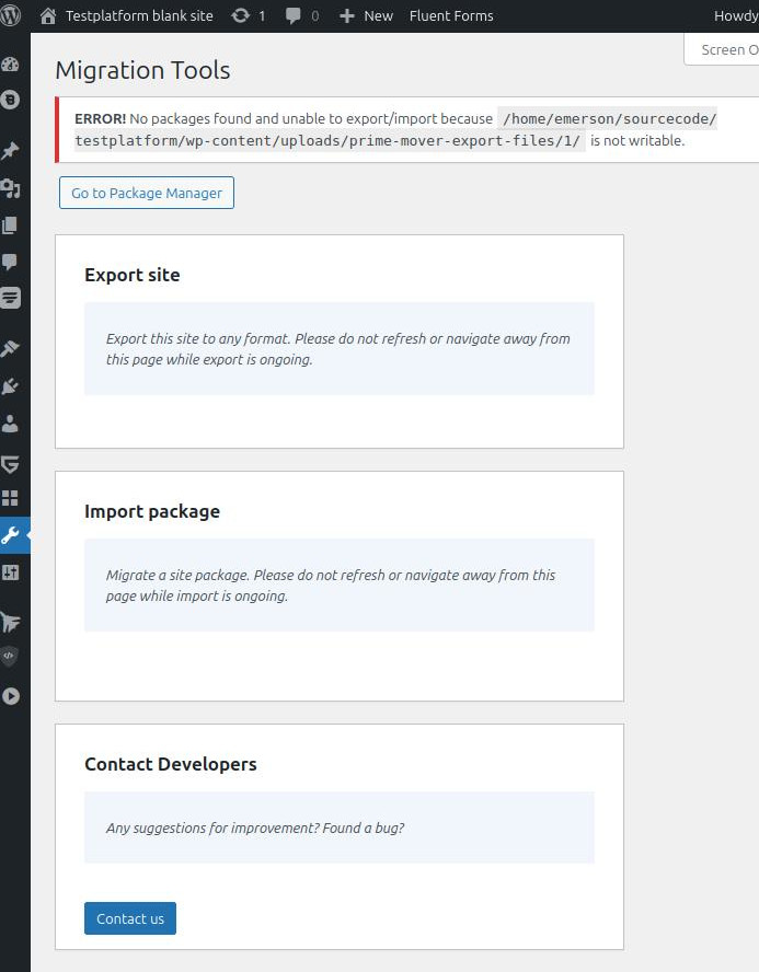 - You won’t be able to export your site or restore a package if permission issues are detected.
